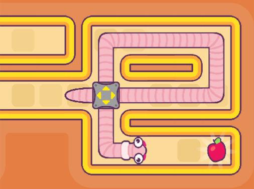 ヘビやミミズが倉庫番のようなルールでリンゴを食べるパズルゲーム。